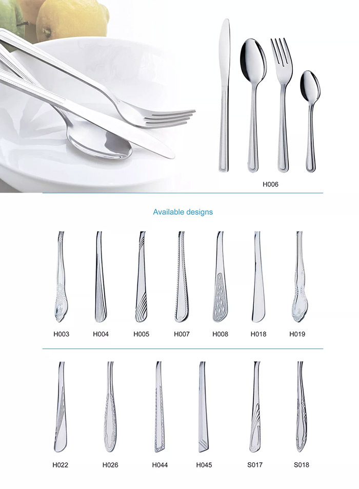 EIn the creation of cutlery range, our design team spends a lot of time working on all details,from timeless classic styles to comtemporary styles, from simple pieces to intricate pattern,ensuring cutlery that is a joy to hold and use.